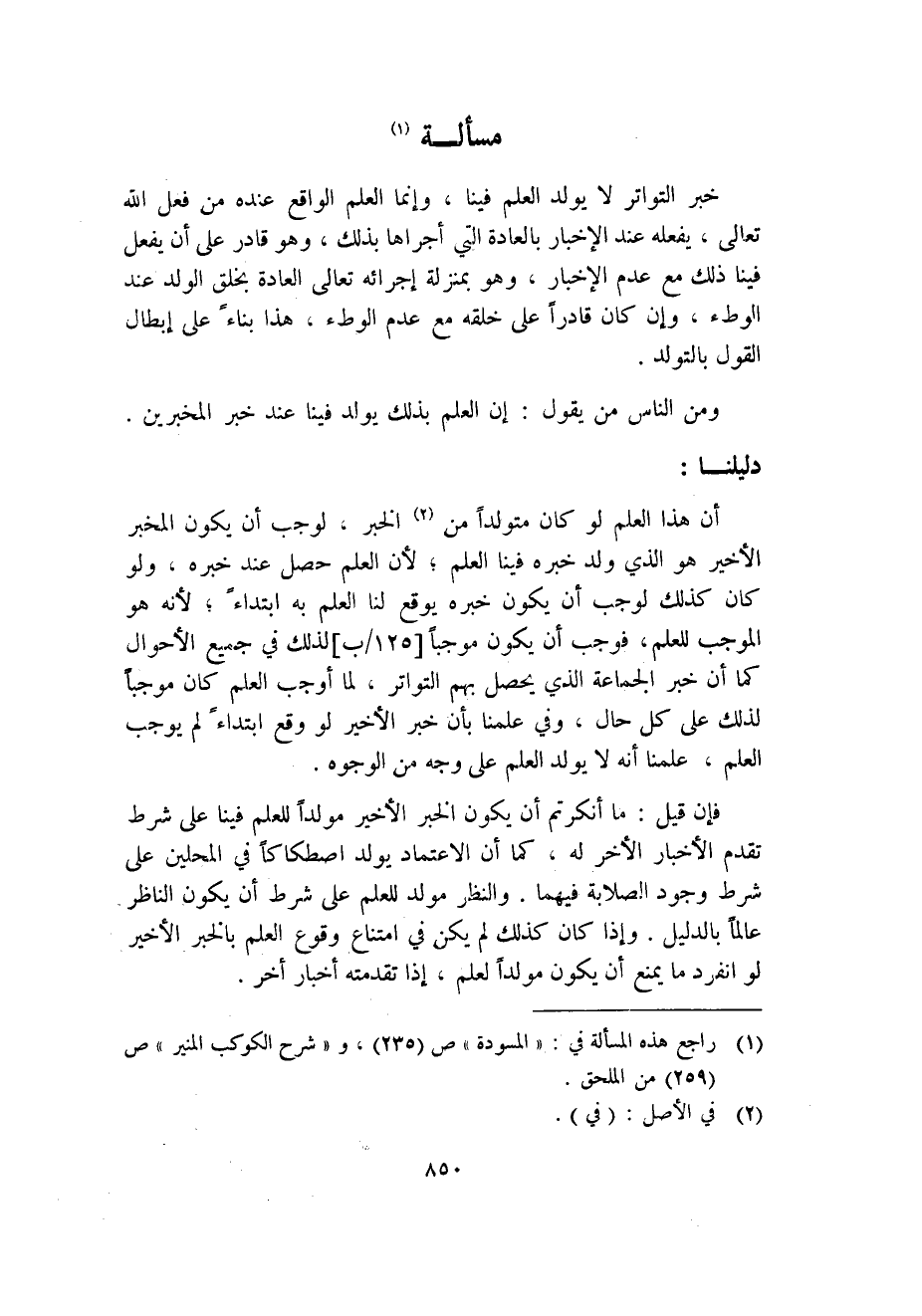 (1) راجع هذه المسألة في: "المسودة" ص (235) ، و"شرح الكوكب المنير" ص (259) من الملحق.