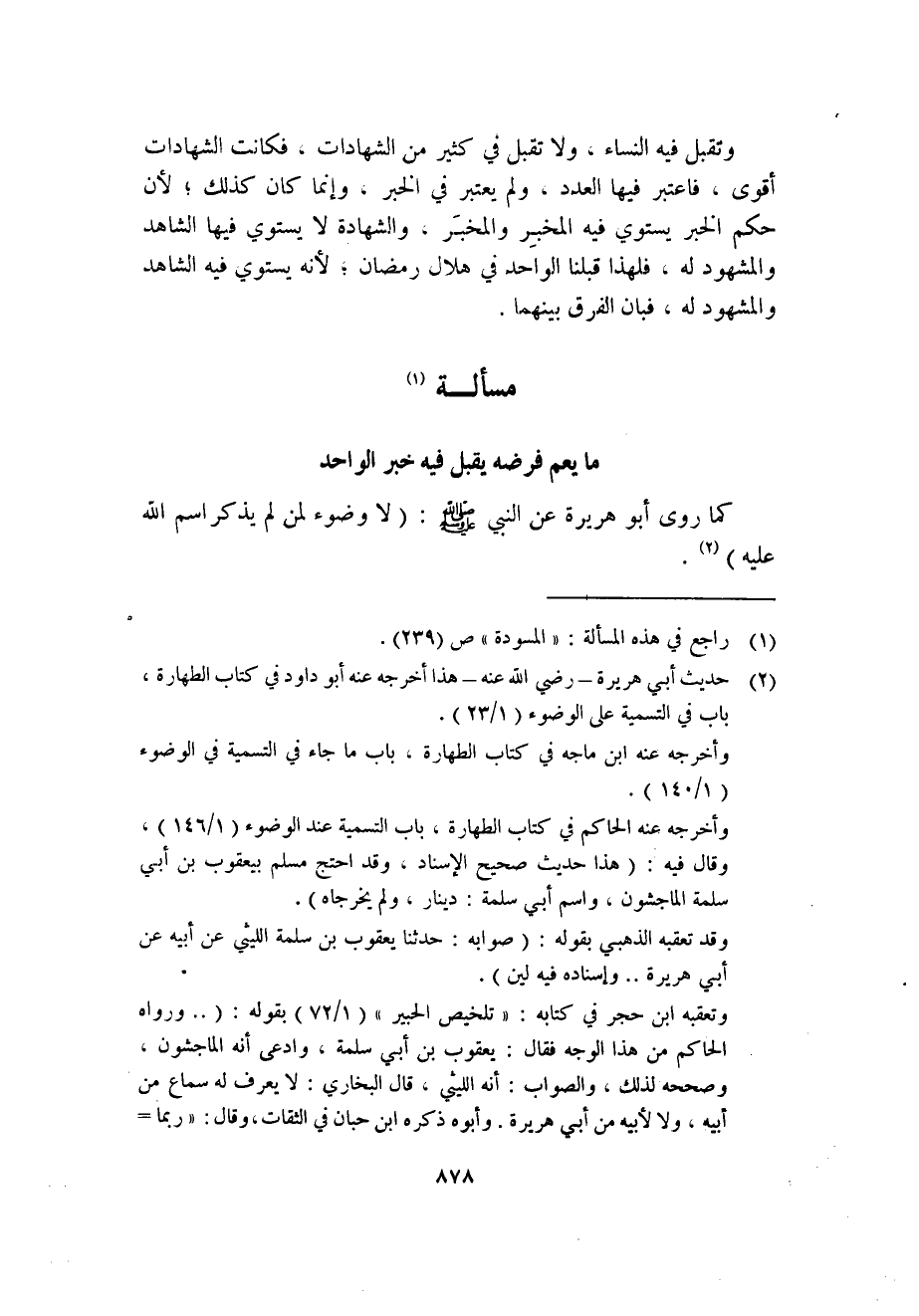 (1) راجع في هذه المسألة: "المسودة" ص (239) .