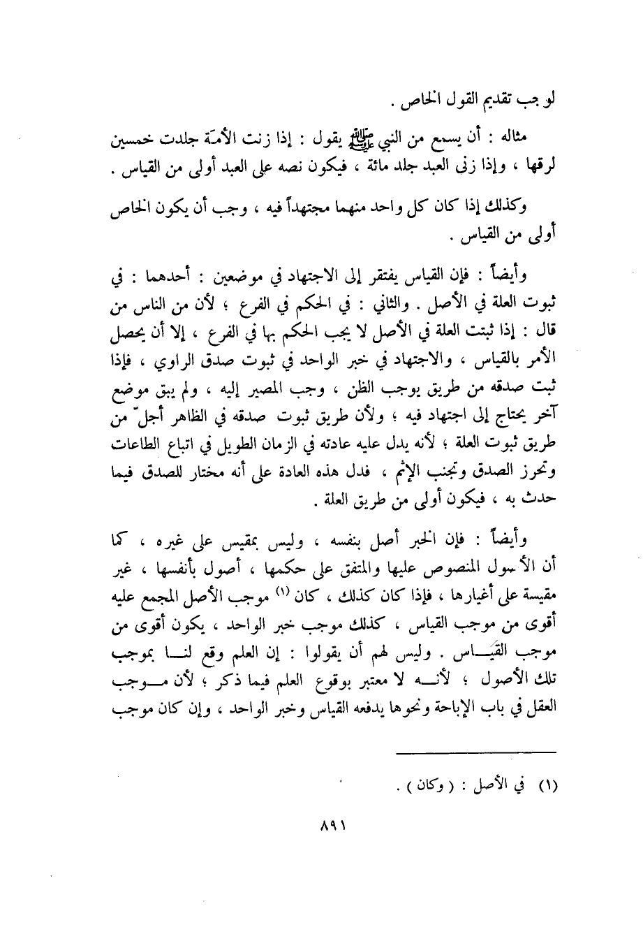 وأيضاً: فإن الخبر أصل بنفسه، وليس بمقيس على غيره، كما أن الأصول المنصوص عليها والمتفق على حكمها، أصول بأنفسها، غير مقيسة على أغيارها، فإذا كان كذلك، كان (1) موجب الأصل المجمع عليه أقوى من موجب القياس، كذلك موجب خبر الواحد، يكون أقوى من موجب القياس. وليس لهم أن يقولوا: إن العلم وقع لنا بموجب تلك الأصول؛ لأنه لا معتبر بوقوع العلم فيما ذكر؛ لأن موجب العقل في باب الإبا حة ونحوها يدفعه القياس وخبر الواحد، وإن كان موجب