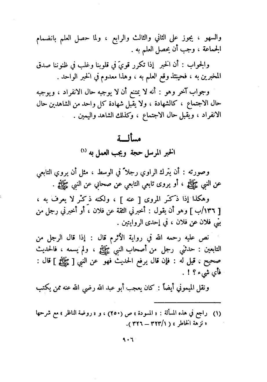 (1) راجع في هذه المسألة: "المسودة" ص (250) ، و"روضة الناظر" مع شرحها "نزهة الخاطر" (1/323-326) .