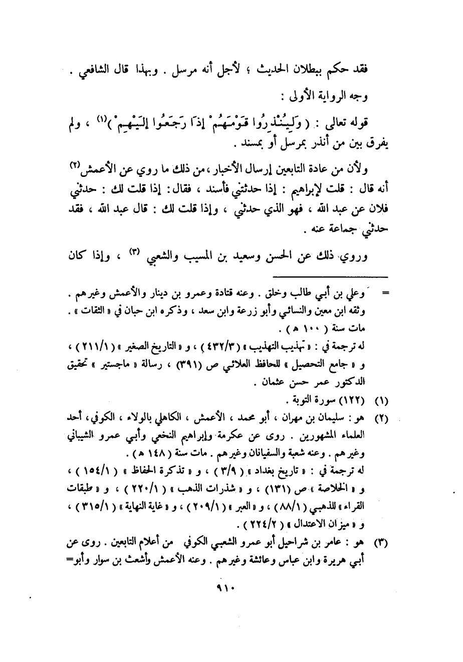(3) هو: عامر بن شراحيل أبو عمرو الشعبي الكوفي من أعلام التابعين. روى عن أبي هريرة وابن عباس وعائشة وغيرهم. وعنه الأعمش وأشعث بن سوار وأبو =