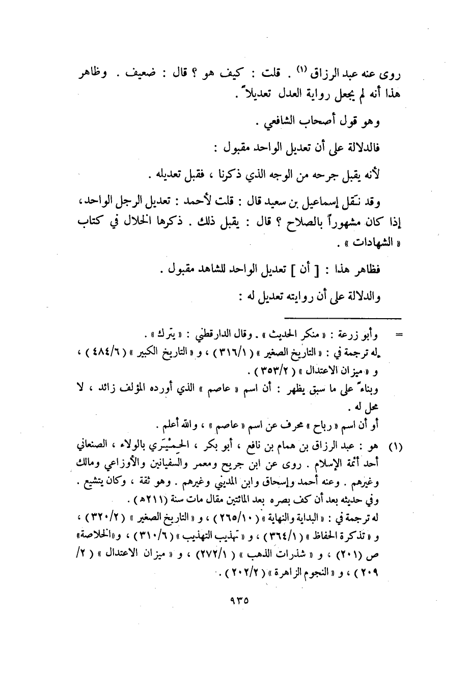 (1) هو: عبد الرزاق بن همام بن نافع، أبو بكر، الحِمْيَري بالولاء، الصنعاني أحد أئمة الإسلام. روى عن ابن جريج ومعمر والسفيانين والأوزاعي ومالك وغيرهم. وعنه أحمد وإسحاق وابن المديني وغيرهم. وهو ثقة، وكان يتشيع.