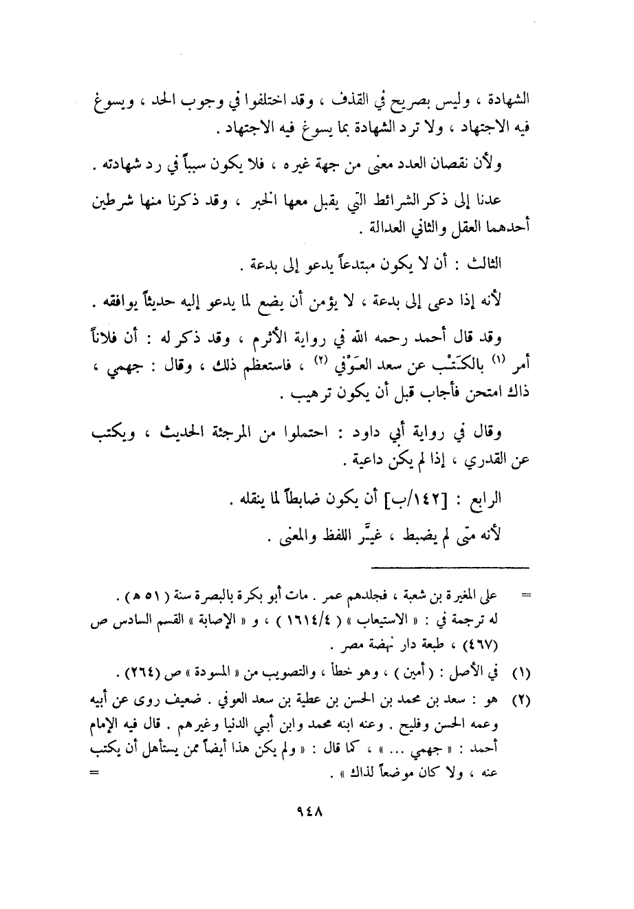 ولأن نقصان العدد معنى من جهه غيره، فلا يكون سبباً في رد شهادته.