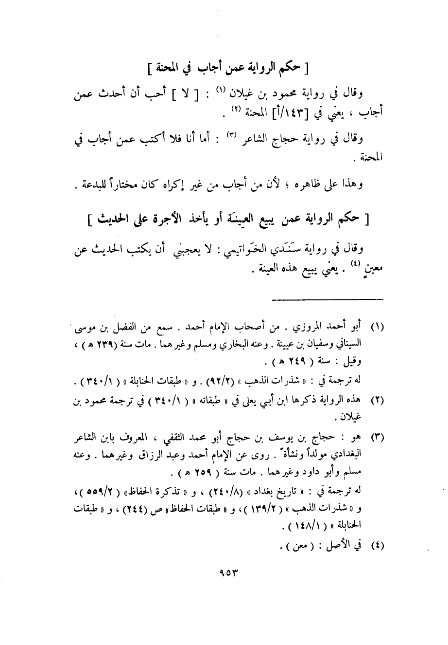 وقال في رواية حجاج الشاعر (3) : أما أنا فلا أكتب عمن أجاب في المحنه.