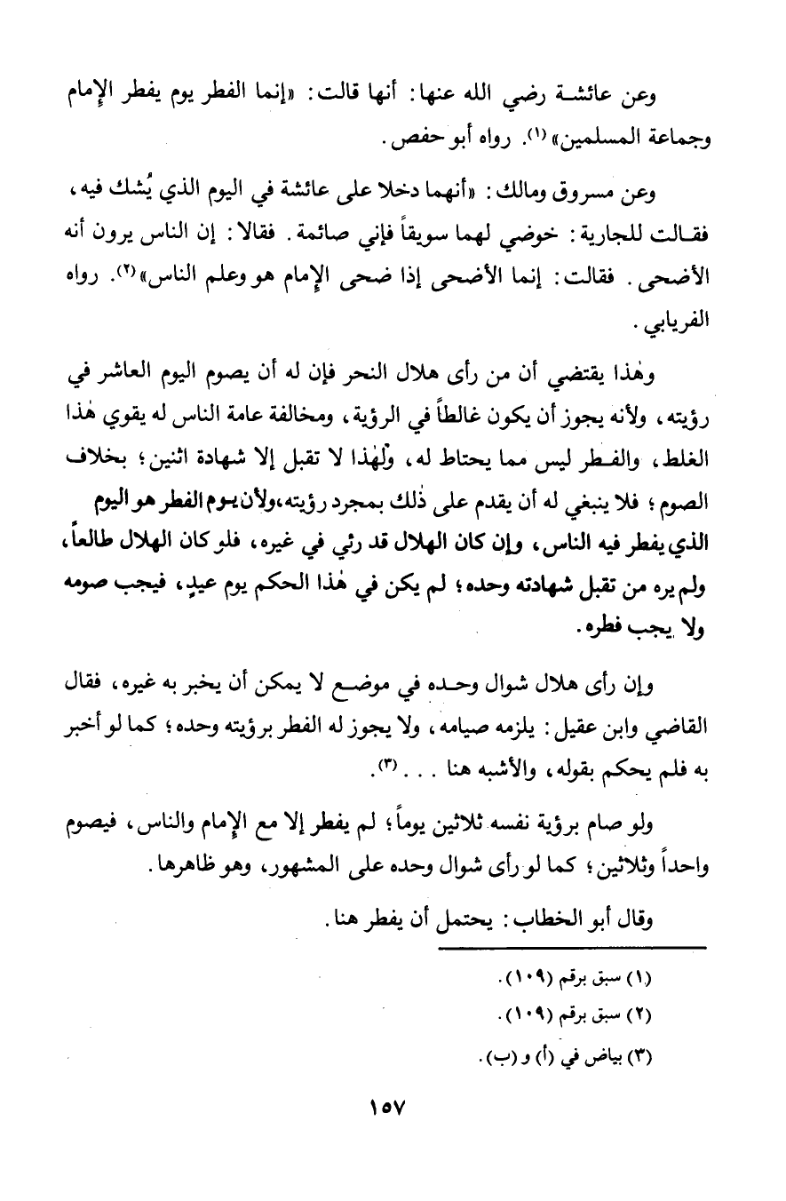 وعن عائشة رضي الله عنها: أنها قالت: «إنما الفطر يوم يفطر الإِمام وجماعة المسلمين». رواه أبو حفص.