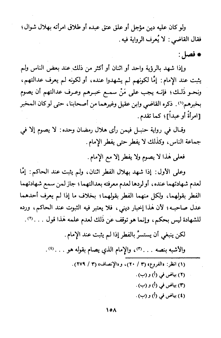 وإذا شهد بالرؤية واحد أو اثنان أو أكثر من ذلك عند بعض الناس ولم يثبت عند الإِمام: إمَّا لكونهم لم يشهدوا عنده, أو لكونه لم يعرف عدالتهم, ونحو ذلك؛ فإنه يجب على مَنْ سمع خبرهم وعرف عدالتهم أن يصوم بخبرهم. ذكره القاضي وابن عقيل وغيرهما من أصحابنا, حتى لو كان المخبر [امرأةً أو عبداً]؛ كما تقدم.