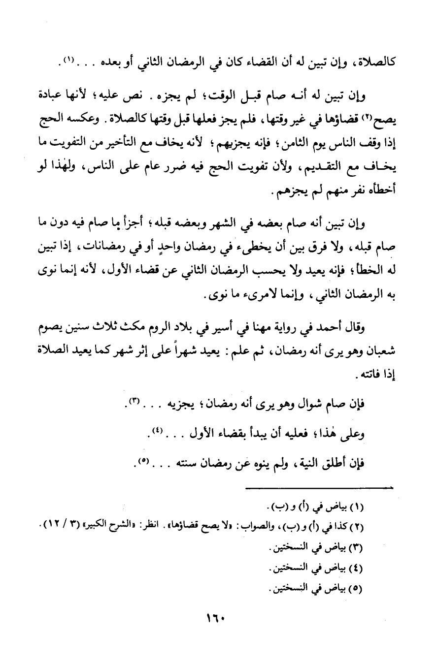 وإن تبين أنه صام بعضه في الشهر وبعضه قبله؛ أجزأ ما صام فيه دون ما صام قبله, ولا فرق بين أن يخطئ في رمضان واحدٍ أو في رمضانات, إذا تبين له الخطأ؛ فإنه يعيد ولا يحسب الرمضان الثاني عن قضاء الأول, لأنه إنما نوى به الرمضان الثاني, وإنما لامرئ ما نوى.