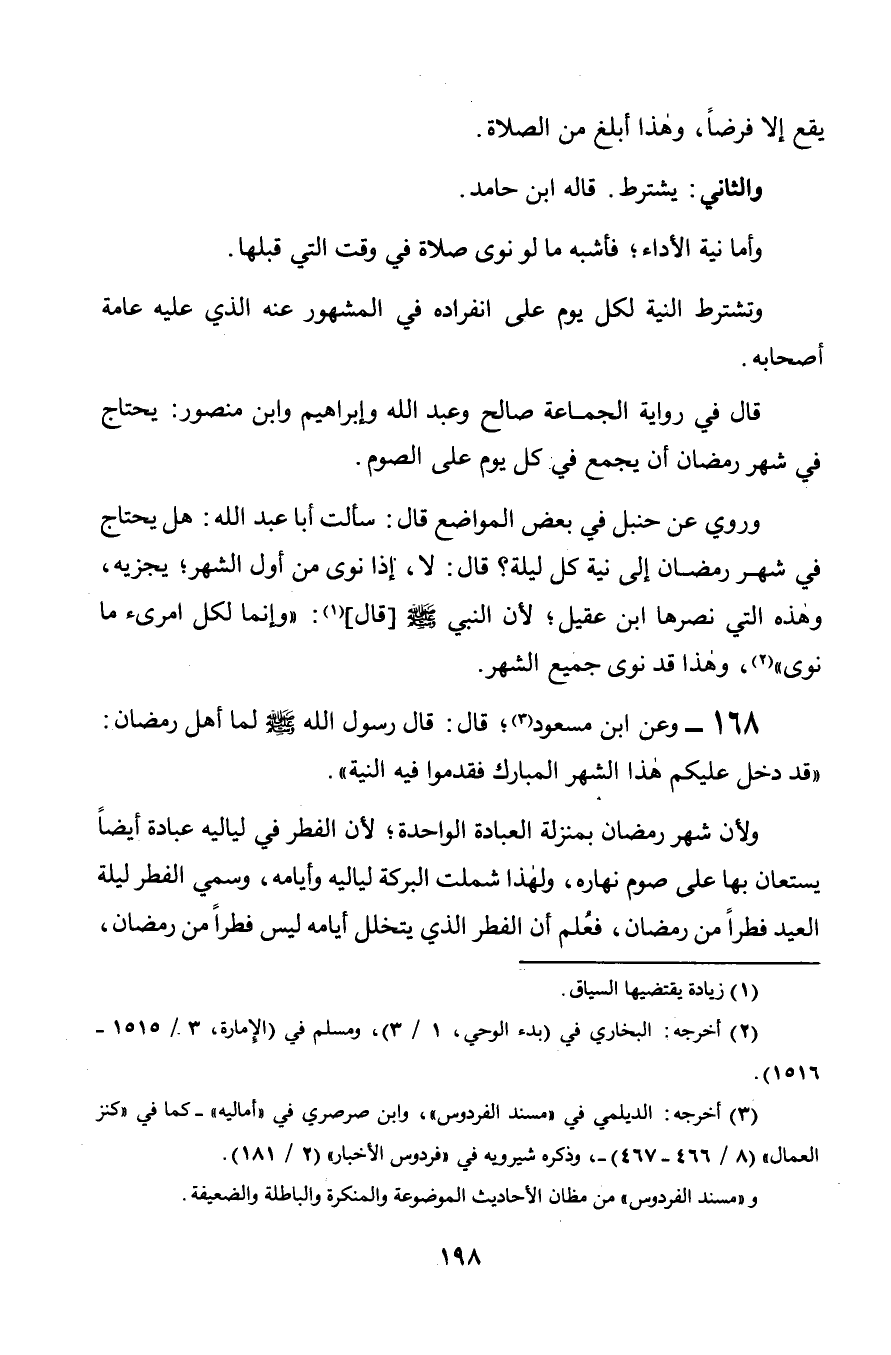 168 - وعن ابن مسعود؛ قال: قال رسول الله صلى الله عليه وسلم لما أهل رمضان: «قد دخل عليكم هذا الشهر المبارك فقدموا فيه النية».