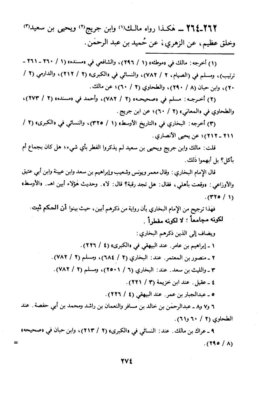 262 - 264 - هكذا رواه مالك وابن جريج ويحيى بن سعيد وخلق عظيم, عن الزهري, عن حُميد بن عبد الرحمن.