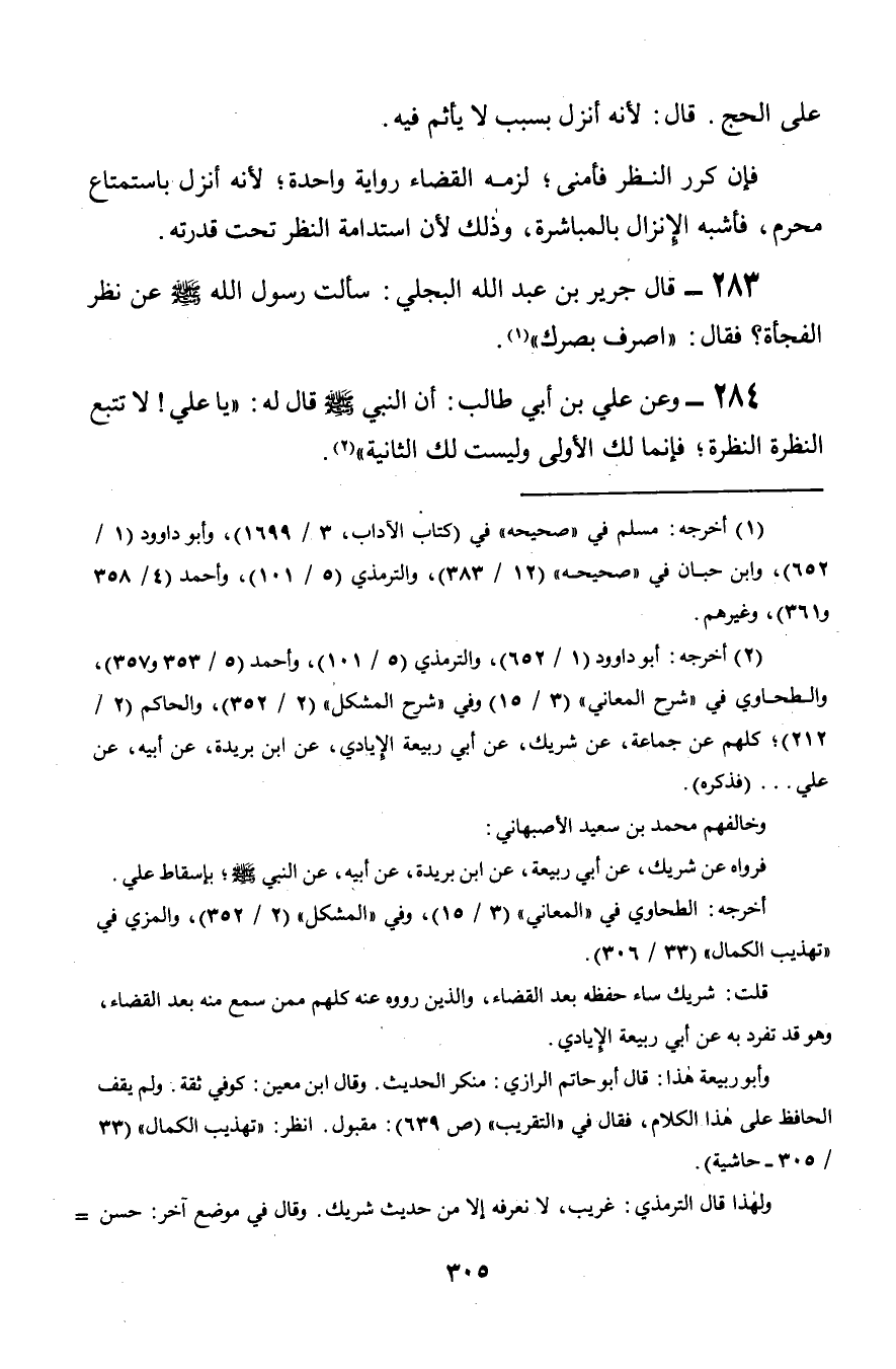 283 - قال جرير عن عبد الله البجلي: سألت رسول الله صلى الله عليه وسلم عن نظر الفجأة؟ فقال: «اصرف بصرك».