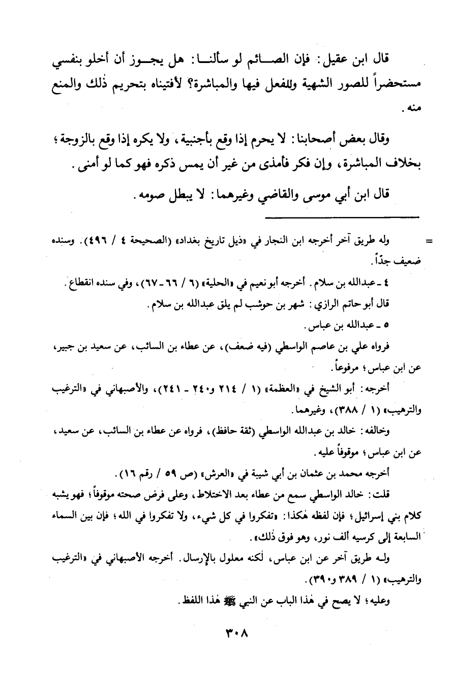 قال ابن عقيل: فإن الصائم لو سألنا: هل يجوز أن أخلو بنفسي مستحضراً للصور الشهية وللفعل فيها والمباشرة؟ لأفتيناه بتحريم ذلك والمنع منه.