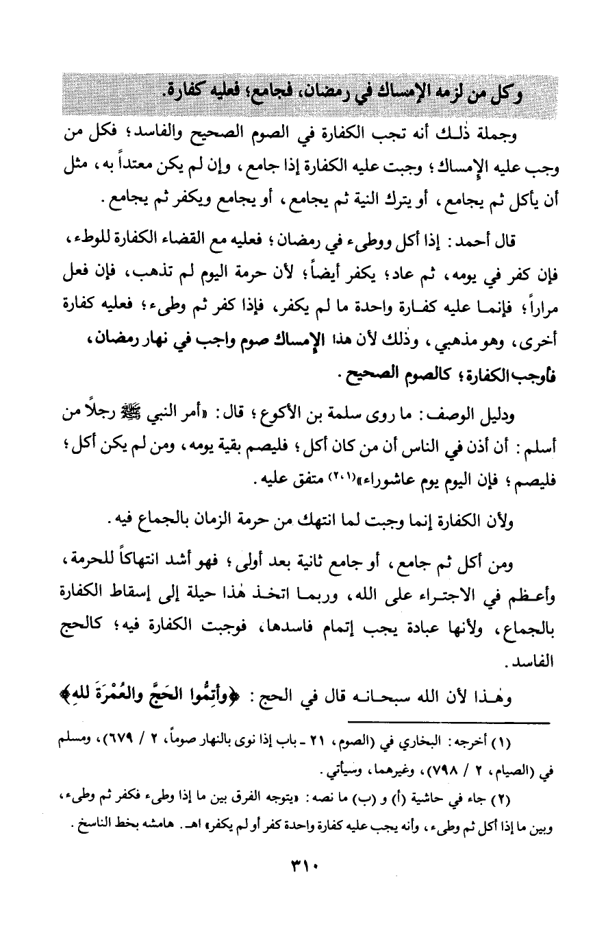 وكل من لزمه الإِمساك في رمضان, فجامع؛ فعليه كفارة.