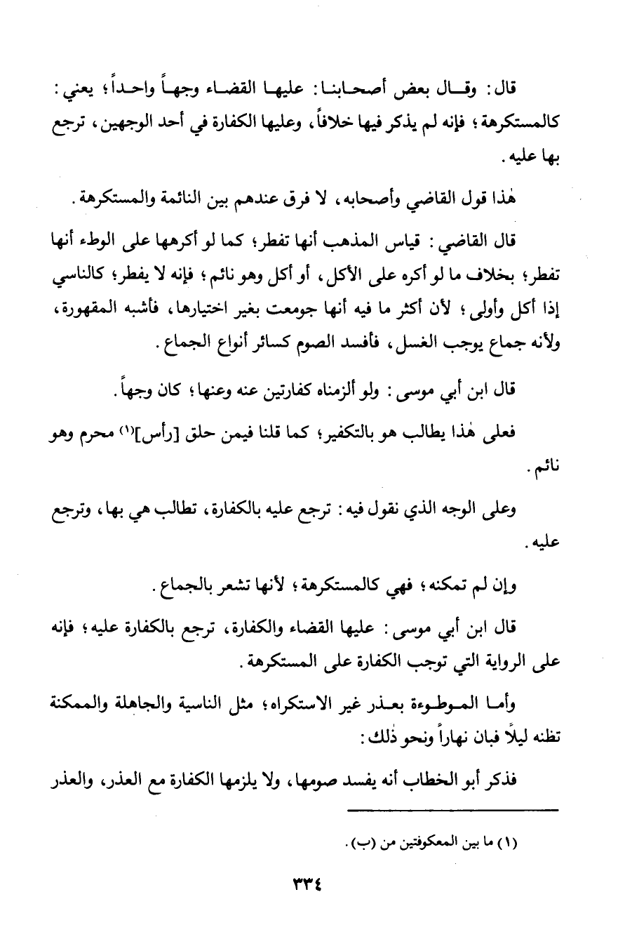 قال: وقال بعض أصحابنا: عليها القضاء وجهاً واحداً؛ يعني: كالمستكرهة؛ فإنه لم يذكر فيها خلافاً, وعليها الكفارة في أحد الوجهين, ترجع بها عليه.