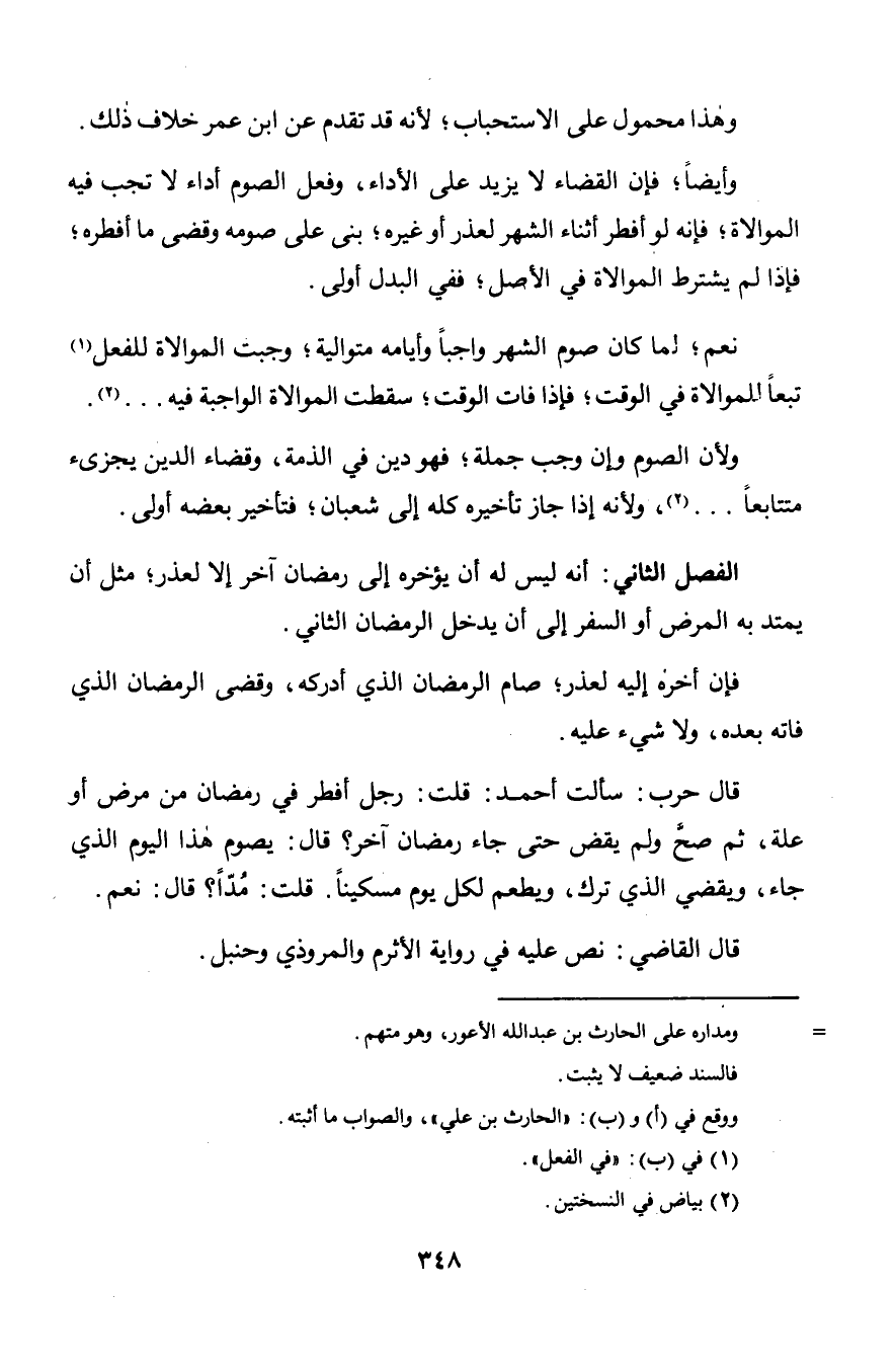 الفصل الثاني: أنه ليس له أن يؤخره إلى رمضان آخر إلا لعذر؛ مثل أن يمتد به المرض أو السفر إلى أن يدخل الرمضان الثاني.
