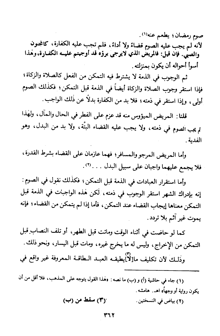 وأما استقرار العبادات في الذمة قبل التمكن؛ فكذلك نقول في الصوم: إنه بإدراك الشهر استقر الوجوب في ذمته, لكن هذه الواجبات في الذمة قبل التمكن معناها إيجاب القضاء عند التمكن, فأما إذا لم يتمكن من القضاء؛ فإنه يموت غير آثم بلا تردد.