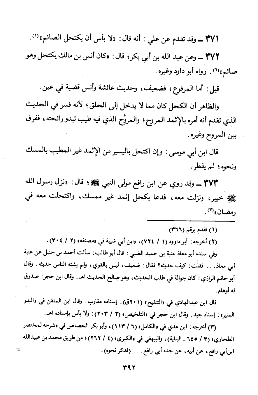 371 - وقد تقدم عن علي: أنه قال: «لا بأس أن يكتحل الصائم».