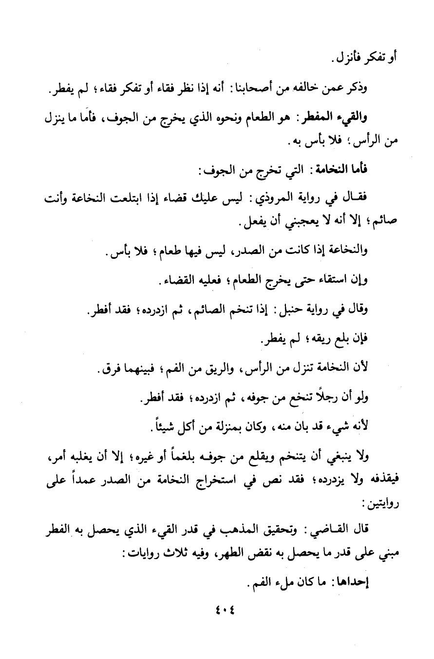 فقال في رواية المروذي: ليس عليك قضاء إذا ابتلعت النخاعة وأنت صائم؛ إلا أنه لا يعجبني أن يفعل.