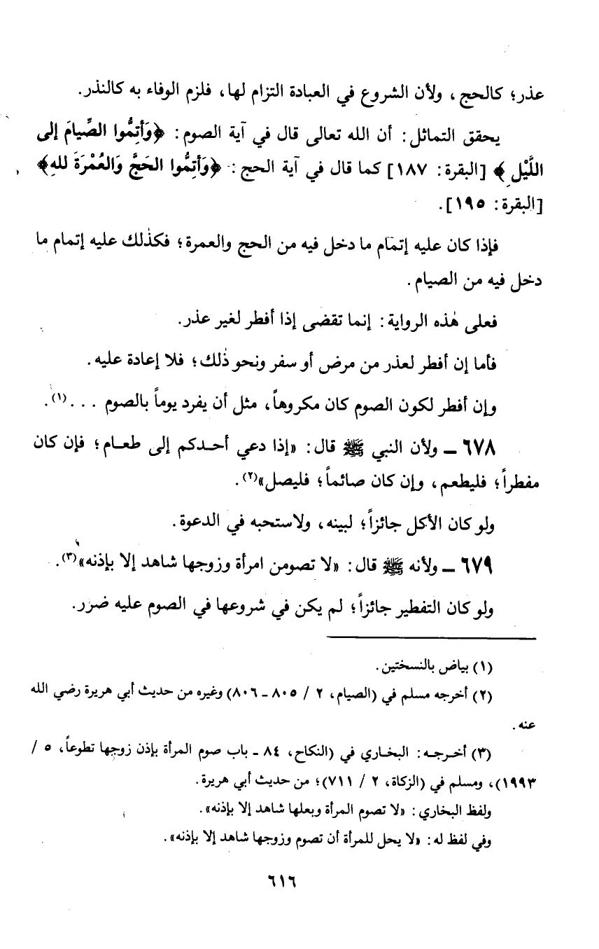 678 - ولأن النبي صلى الله عليه وسلم قال: «إذا دعي أحدكم إلى طعام؛ فإن كان مفطراً؛ فليطعم, وإن كان صائماً؛ فليصل».