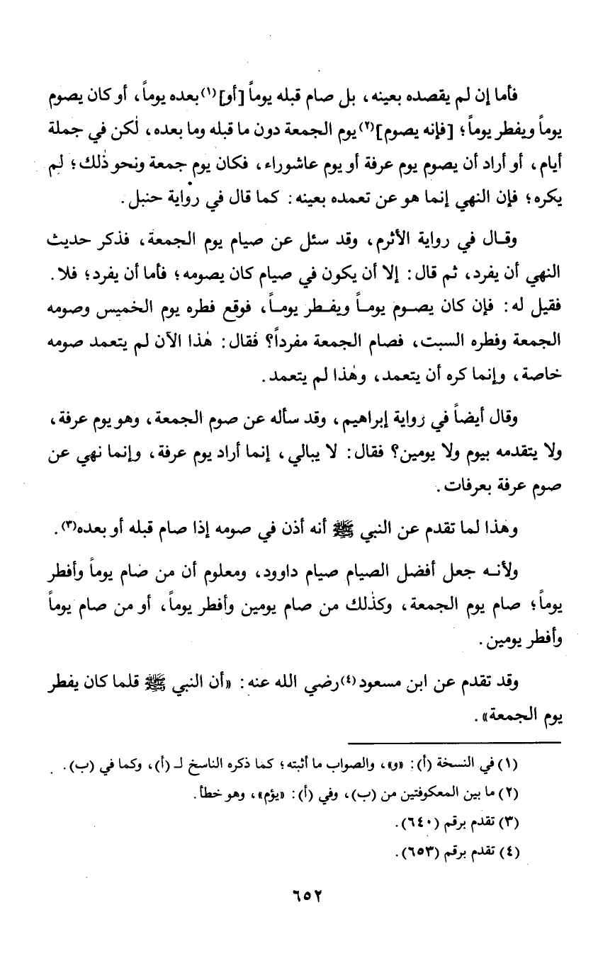 وقد تقدم عن ابن مسعود رضي الله عنه: «أن النبي صلى الله عليه وسلم قلما كان يفطر يوم الجمعة».