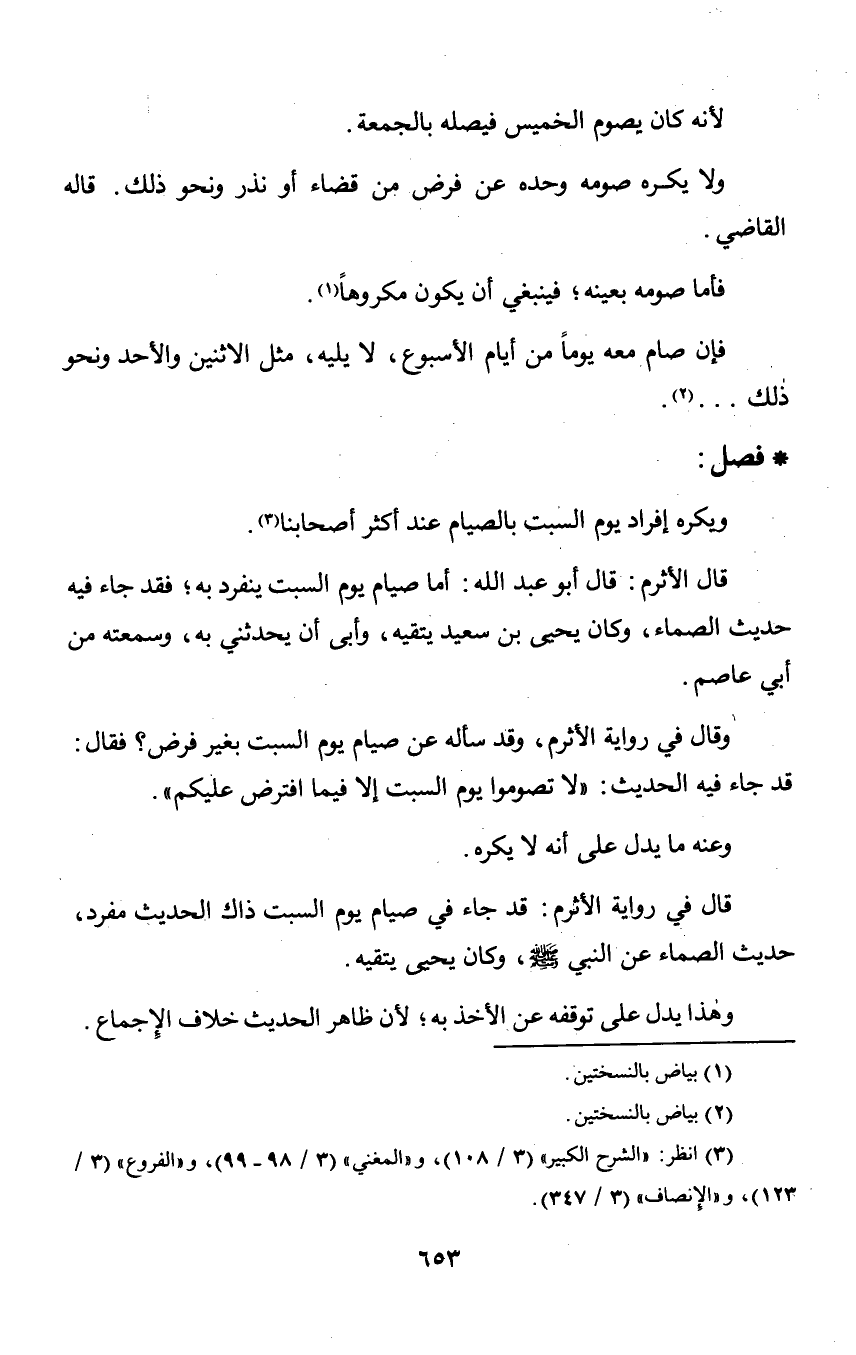 وقال في رواية الأثرم, وقد سأله عن صيام يوم السبت بغير فرض؟ فقال: قد جاء فيه الحديث: «لا تصوموا يوم السبت إلا فيما افترض عليكم».