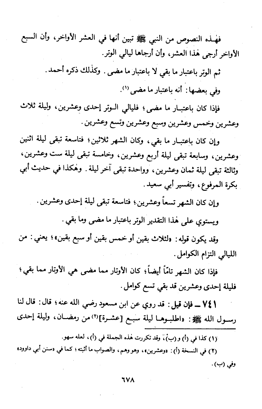 741 - فإن قيل: قد روي عن ابن مسعود رضي الله عنه؛ قال: قال لنا رسول الله صلى الله عليه وسلم: «اطلبوها ليلة سبع [عشرة] من رمضان, وليلة إحدى