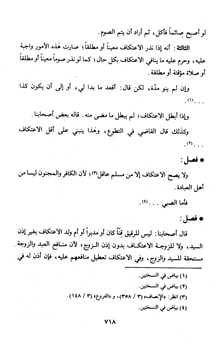 الثالثة: أنه إذا نذر الاعتكاف معيناً أو مطلقاً؛ صارت هذه الأمور واجبة عليه, وحرم عليه ما ينافي الاعتكاف بكل حال؛ كما لو نذر صوماً معيناً أو مطلقاً أو صلاة مؤقتة أو مطلقة.