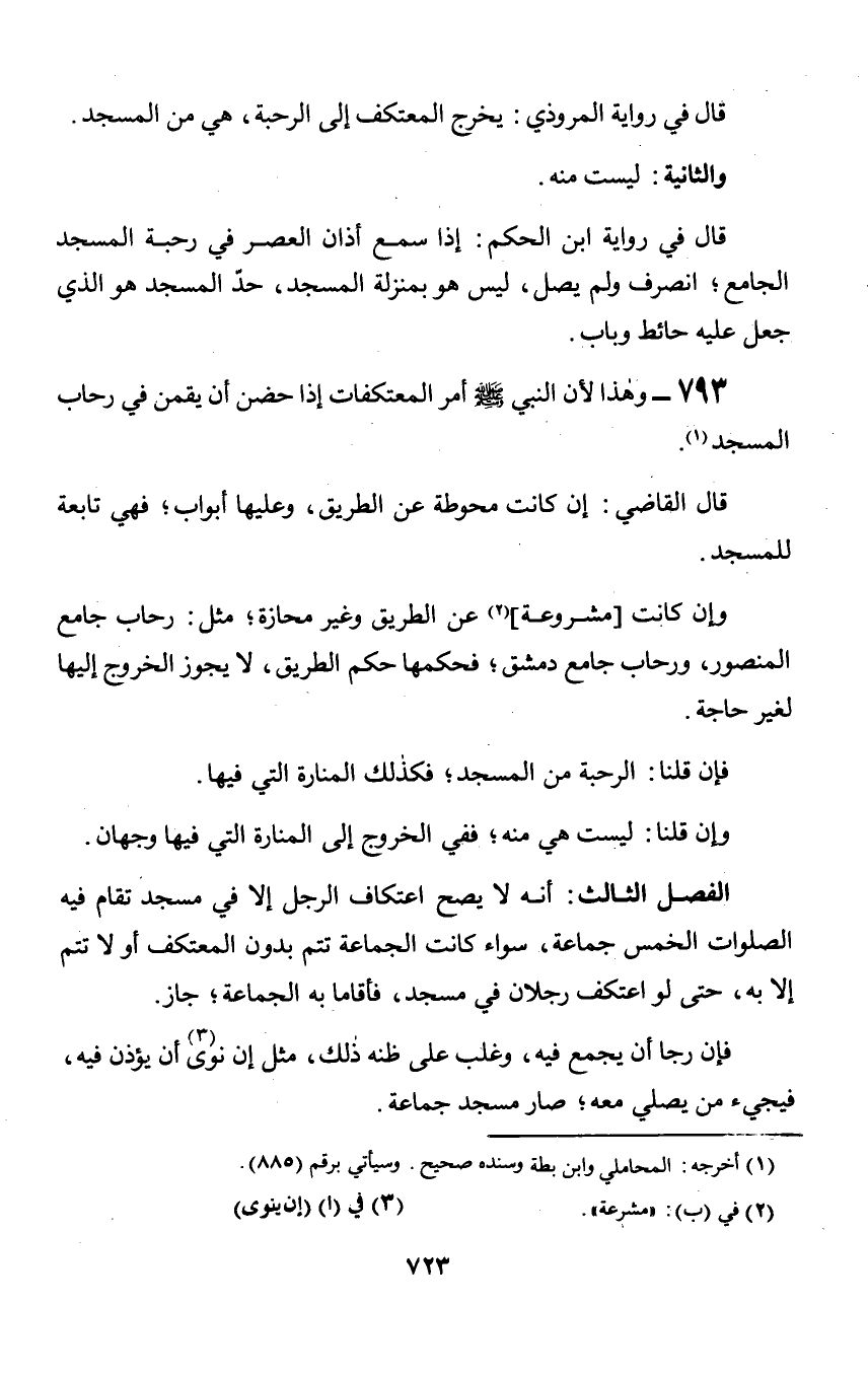 793 - وهذا لأن النبي صلى الله عليه وسلم أمر المعتكفات إذا حضن أن يقمن في رحاب المسجد.