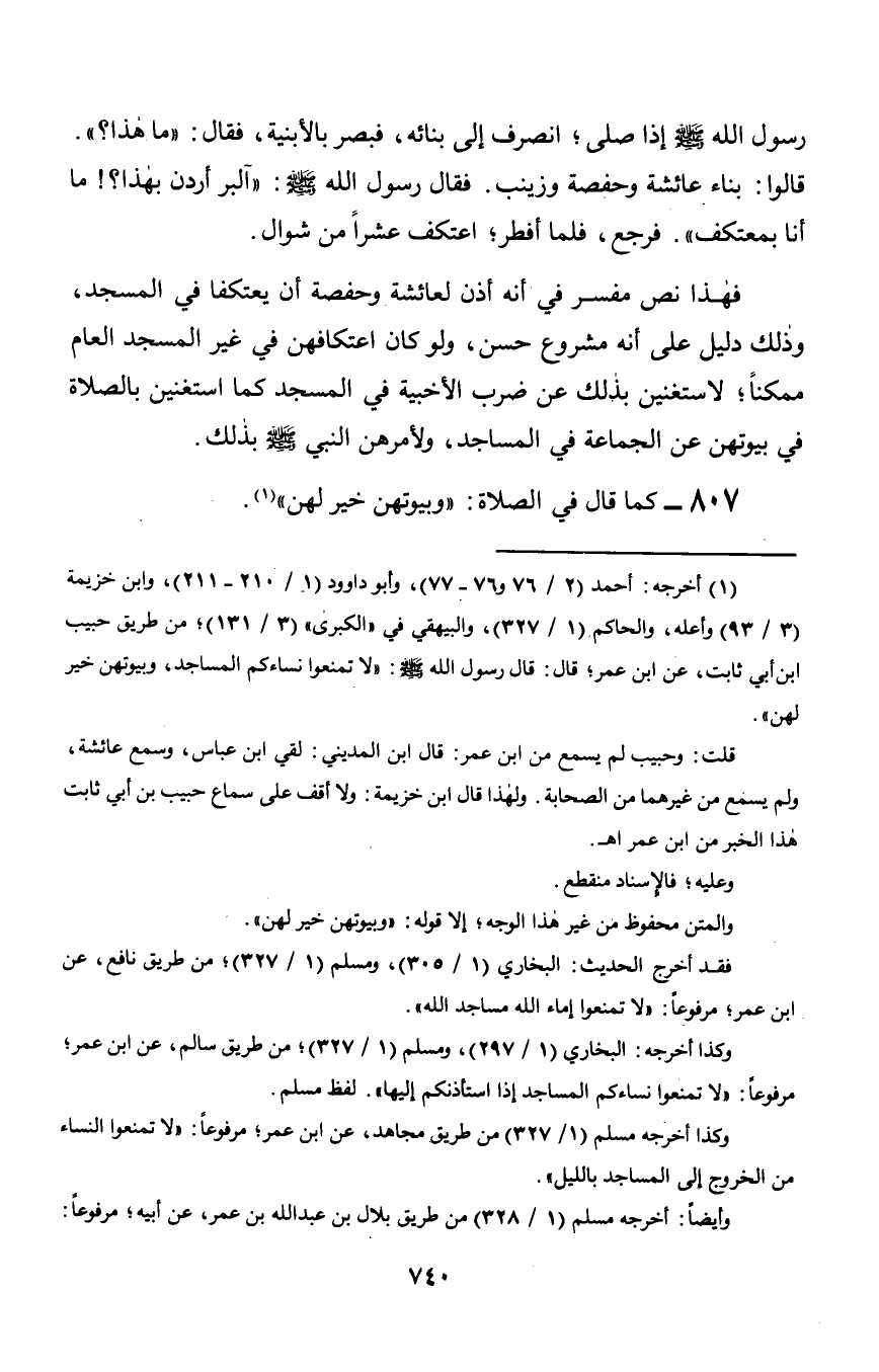 807 - كما قال في الصلاة: «وبيوتهن خير لهن».