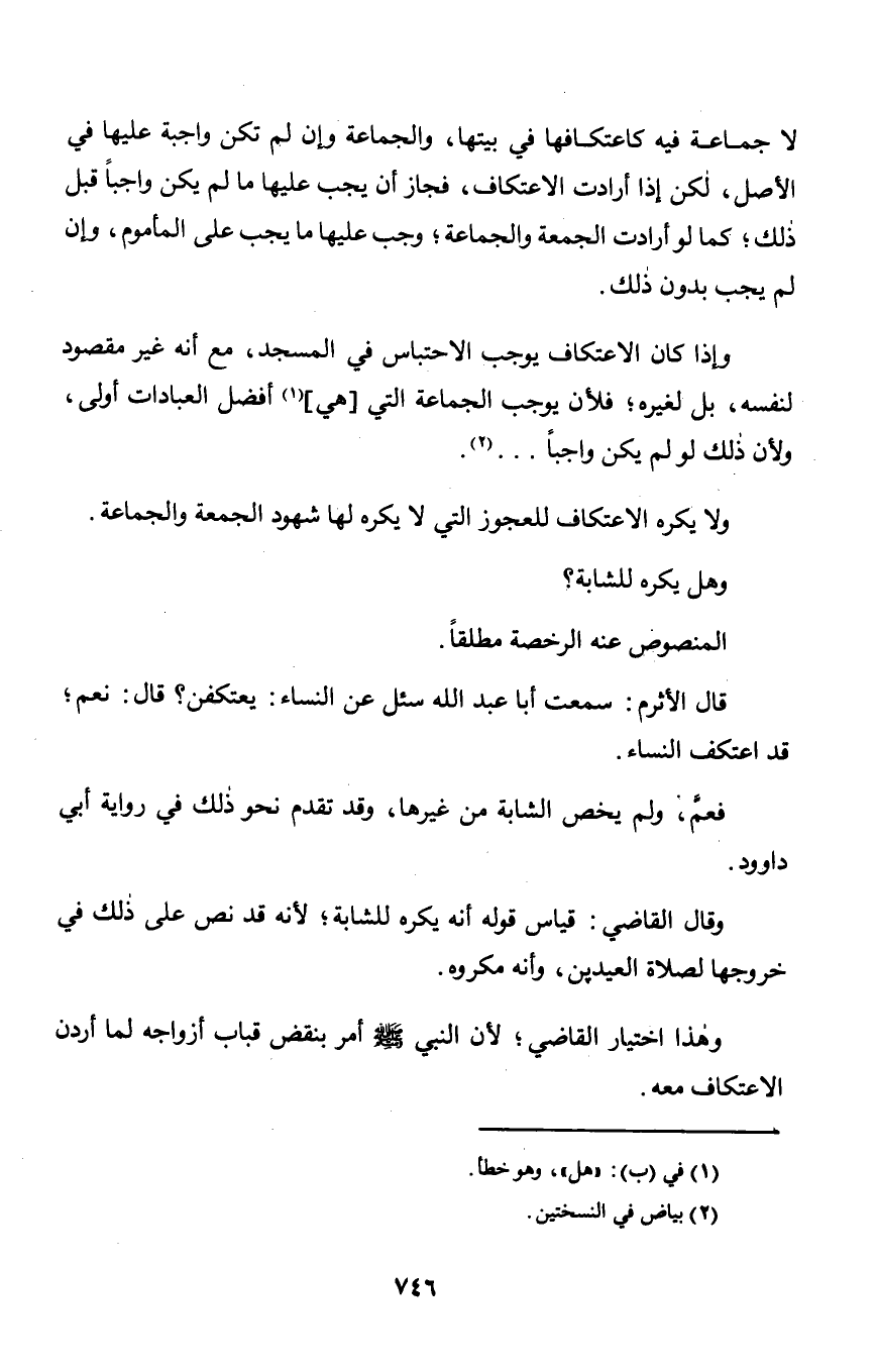قال الأثرم: سمعت أبا عبد الله سئل النساء: يعتكفن؟ قال: نعم؛ قد اعتكف النساء.