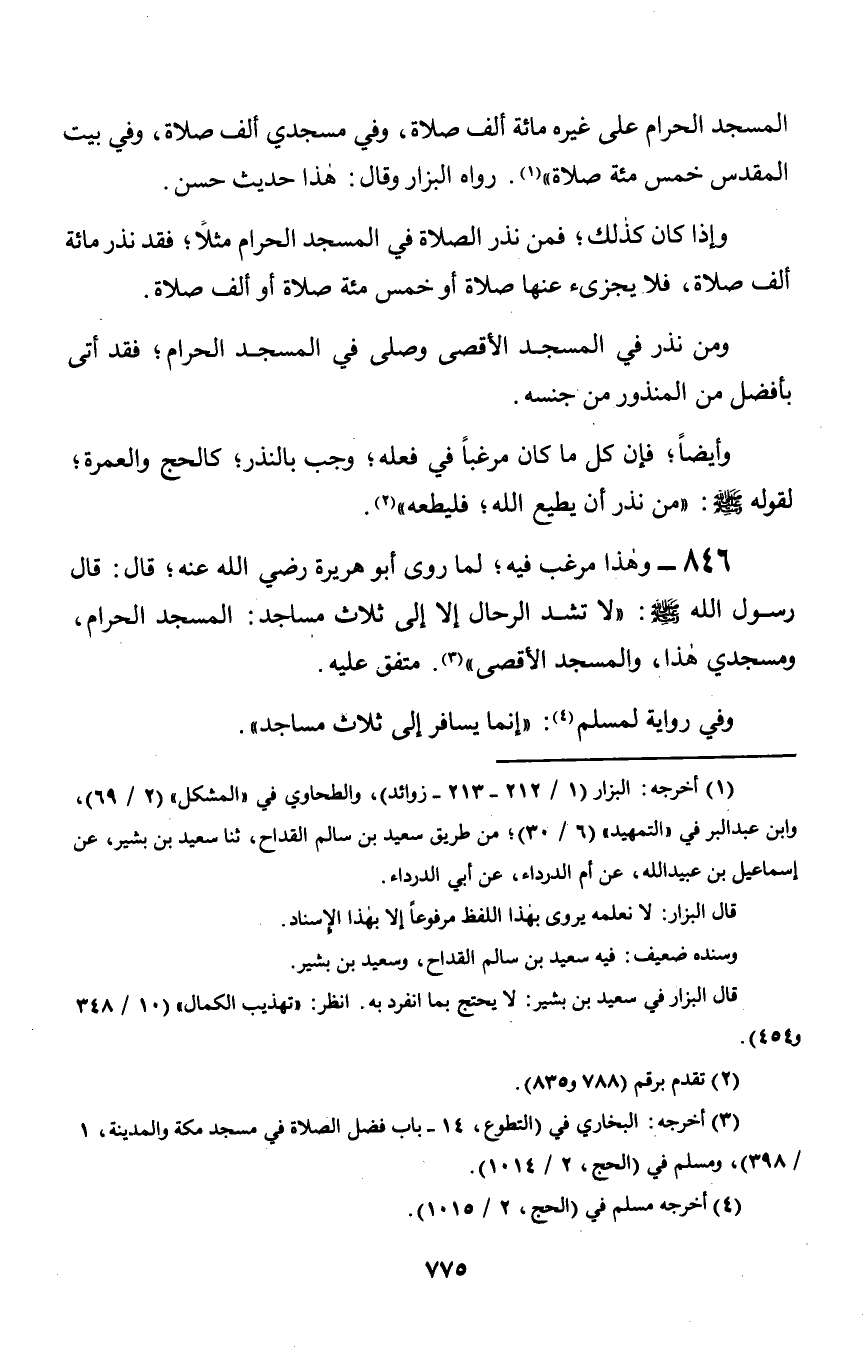 846 - وهذا مرغب فيه؛ لما روى أبو هريرة رضي الله عنه؛ قال: قال رسول الله صلى اله عليه وسلم: «لا تشد الرحال إلا إلى ثلاث مساجد: المسجد الحرام, ومسجدي هذا, والمسجد الأقصى». متفق عليه.