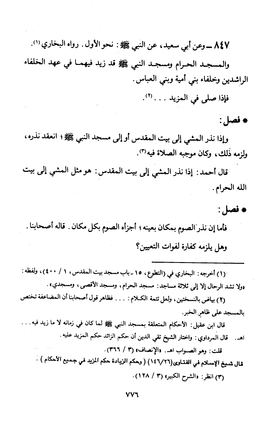 قال أحمد: إذا نذر المشي إلى بيت المقدس: هو مثل المشي إلى بيت الله الحرام.
