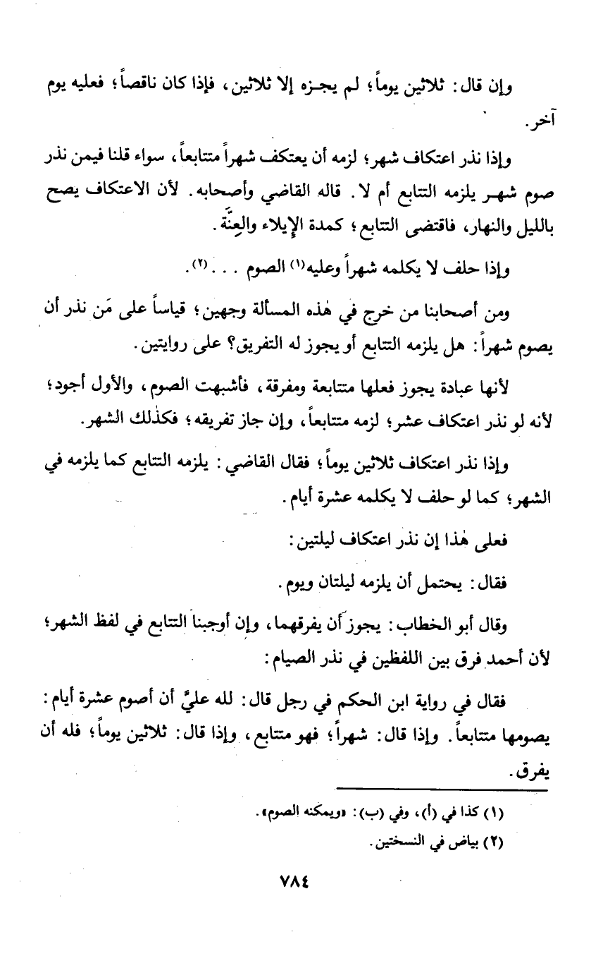 ومن أصحابنا من خرج في هذه المسألة وجهين؛ قياساً على مَن نذر أن يصوم شهراً: هل يلزمه التتابع أو يجوز له التفريق؟ على روايتين.