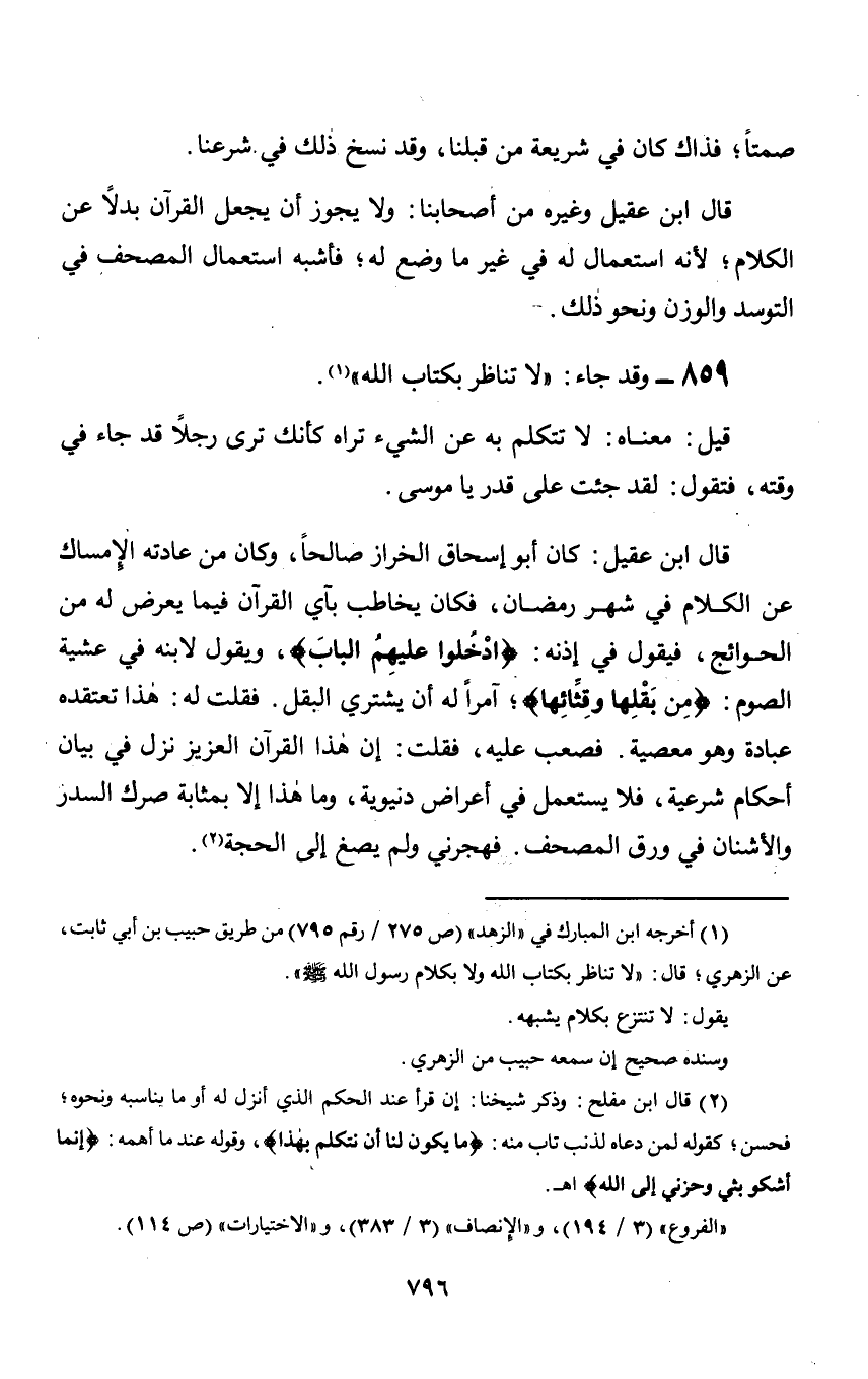 859 - وقد جاء: «لا تناظر بكتاب الله».