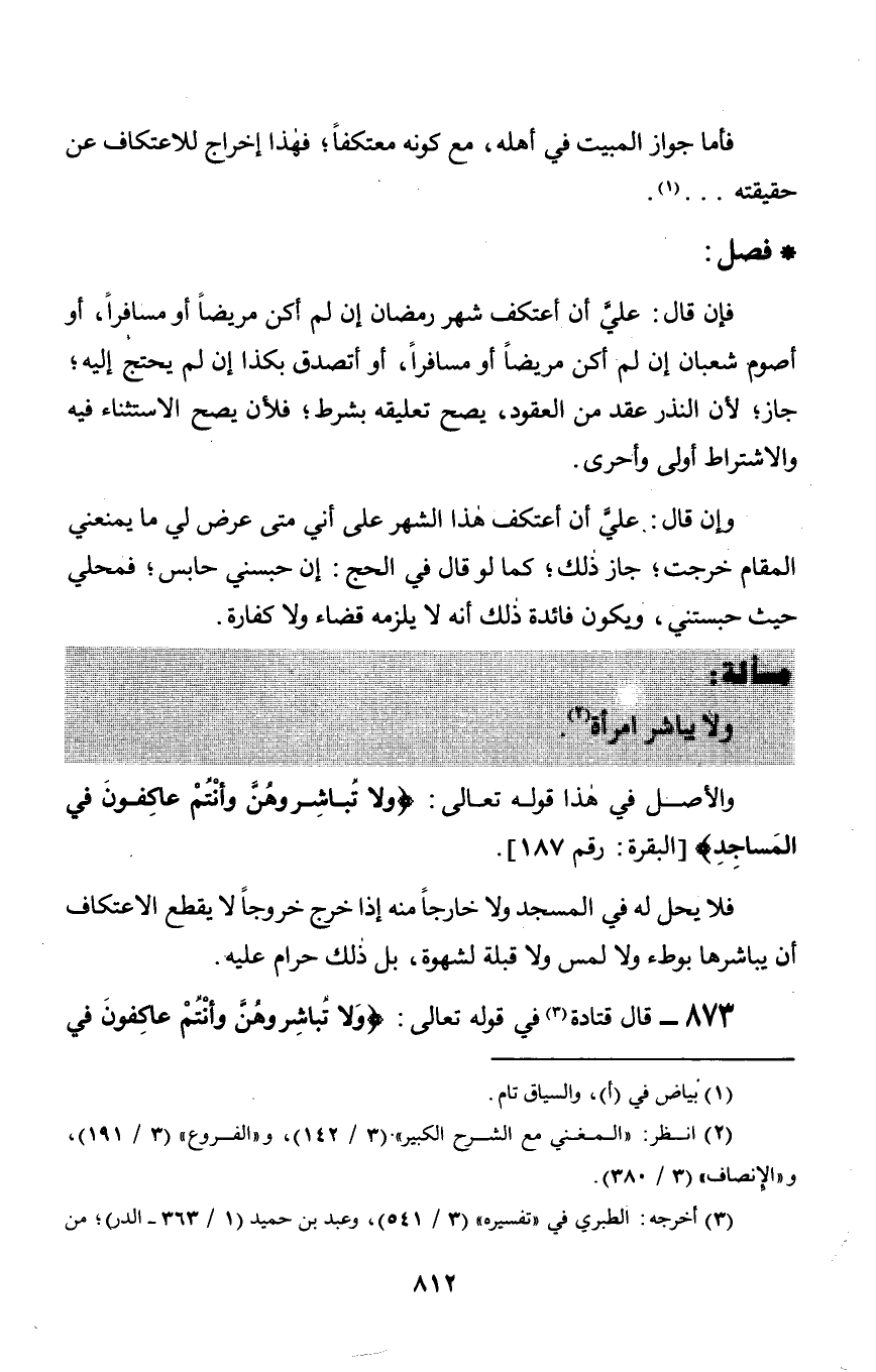 873 - قال قتادة في قوله تعالى: {وَلَا تُبَاشِرُوهُنَّ وَأَنْتُمْ عَاكِفُونَ فِي
