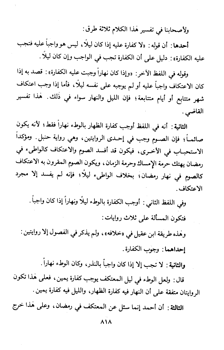 قال: ولعل الوطء في ليل المعتكف يوجب كفارة اليمين, فعلى هذا تكون الروايتان متفقة على أن النهار فيه كفارة الظهار, والليل فيه كفارة يمين.