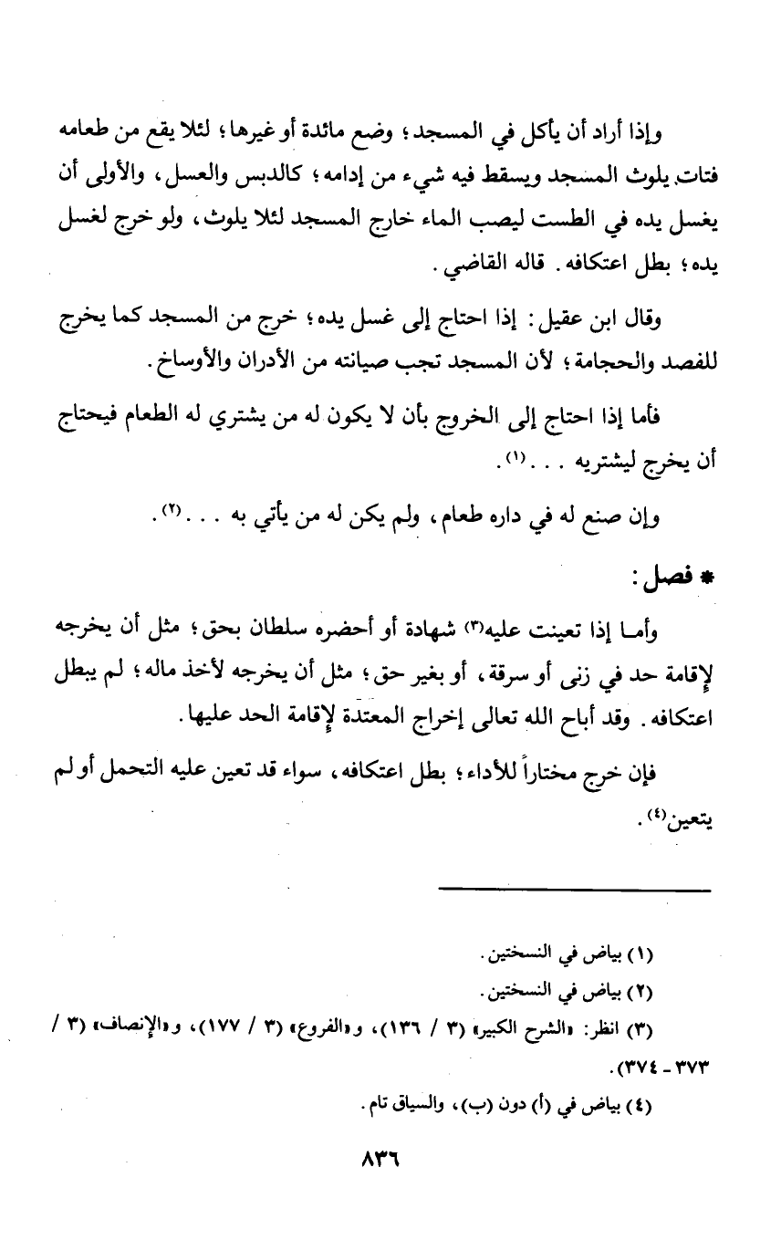 وقال ابن عقيل: إذا احتاج إلى غسل يده؛ خرج من المسجد كما يخرج للفصد والحجامة؛ لأن المسجد تجب صيانته من الأدران والأوساخ.