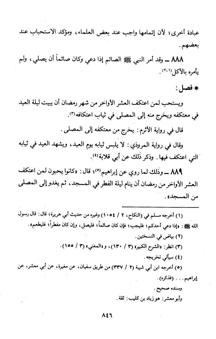 889 - وذلك لما روي عن إبراهيم؛ قال: «كانوا يحبون لمن اعتكف العشر الأواخر من رمضان أن ينام ليلة الفطر في المسجد, ثم يغدو إلى المصلى من المسجد».