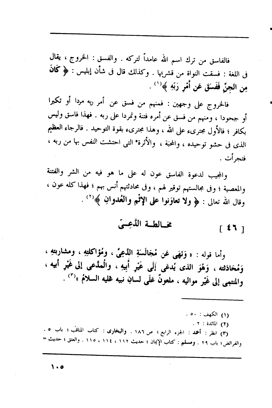 فالخروج على وجهين: فمنهم من فسق عن أمر به مردا أو تكبرا أو جحودا، ومنهم من فسقعن أمره فتنى وتمردا على ربه. فهذا فاسق وليس بكافر؛ فالأول مجترىء على الله، وهذا مجترىء بقوة التوحيد. فالرجاء العظيم الذي في حشو توحيده، والمحبة، والأثرة التي احتسشت النفس بها من ربه، فتجرأت.