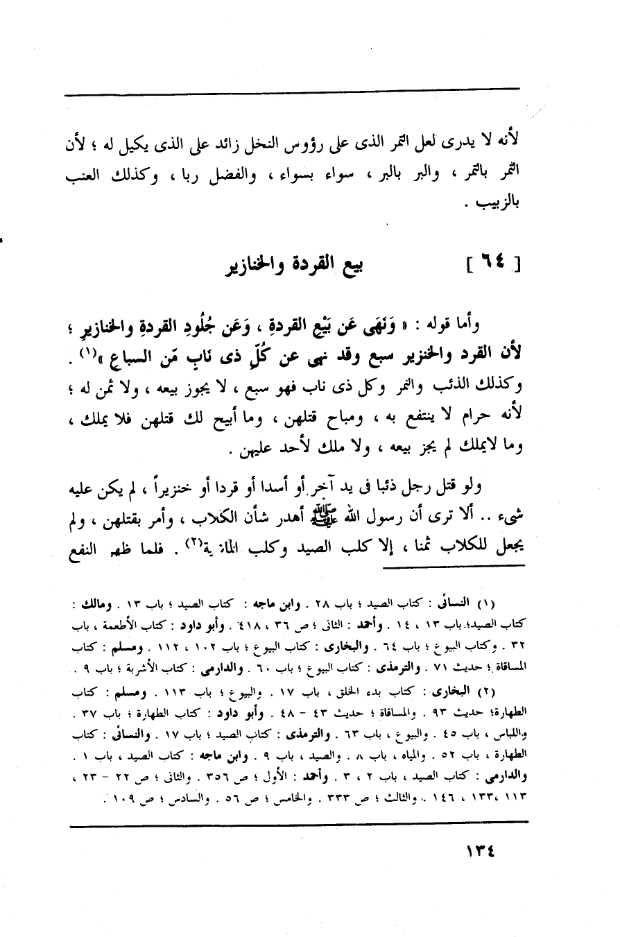 وأما قوله: (ونهى عن بيع القردة، وعن جلود القردة والخنازير؛ لأن القرد والخنزير سبع وقد نهى عن كل ذي ناب من السباع) .