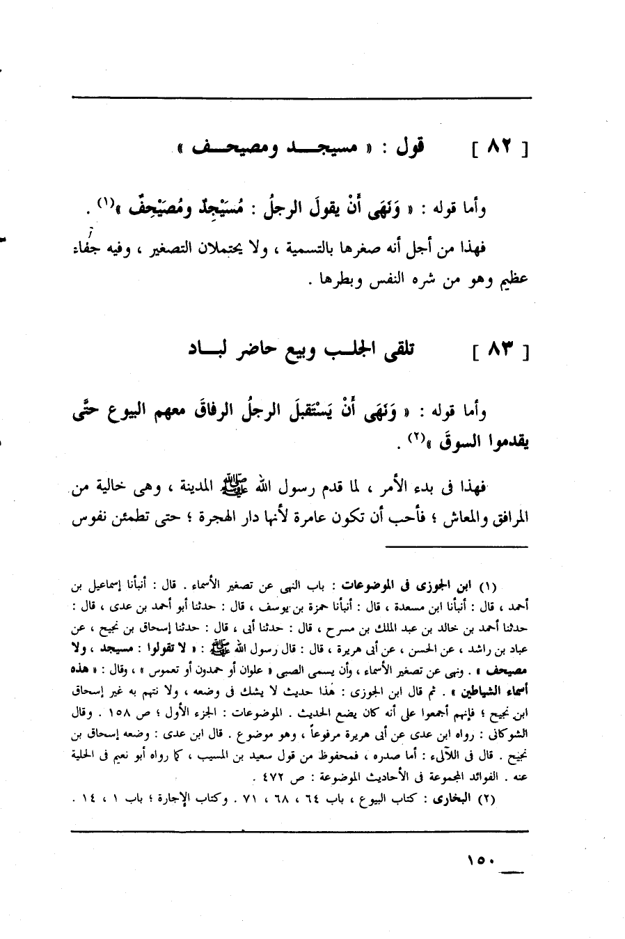 وأما قوله: (نهى أن يقول الرجل: مسيجد ومصيحف) فهذا من أجل أنه صغرها بالتسمية، ولا يحتملان التصغير، وفيه جفاء عظيم وهو من شره النفس وبطرها.