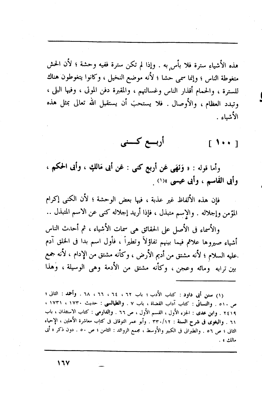 فإن هذه الألفاظ غير عذبة، فيها بعض الوحشة؛ لأن الكنى إكرام المؤمن وإجلاله. والاسم متبذل، فإذا أريد إجلاله كنى عن الاسم المتبذل..