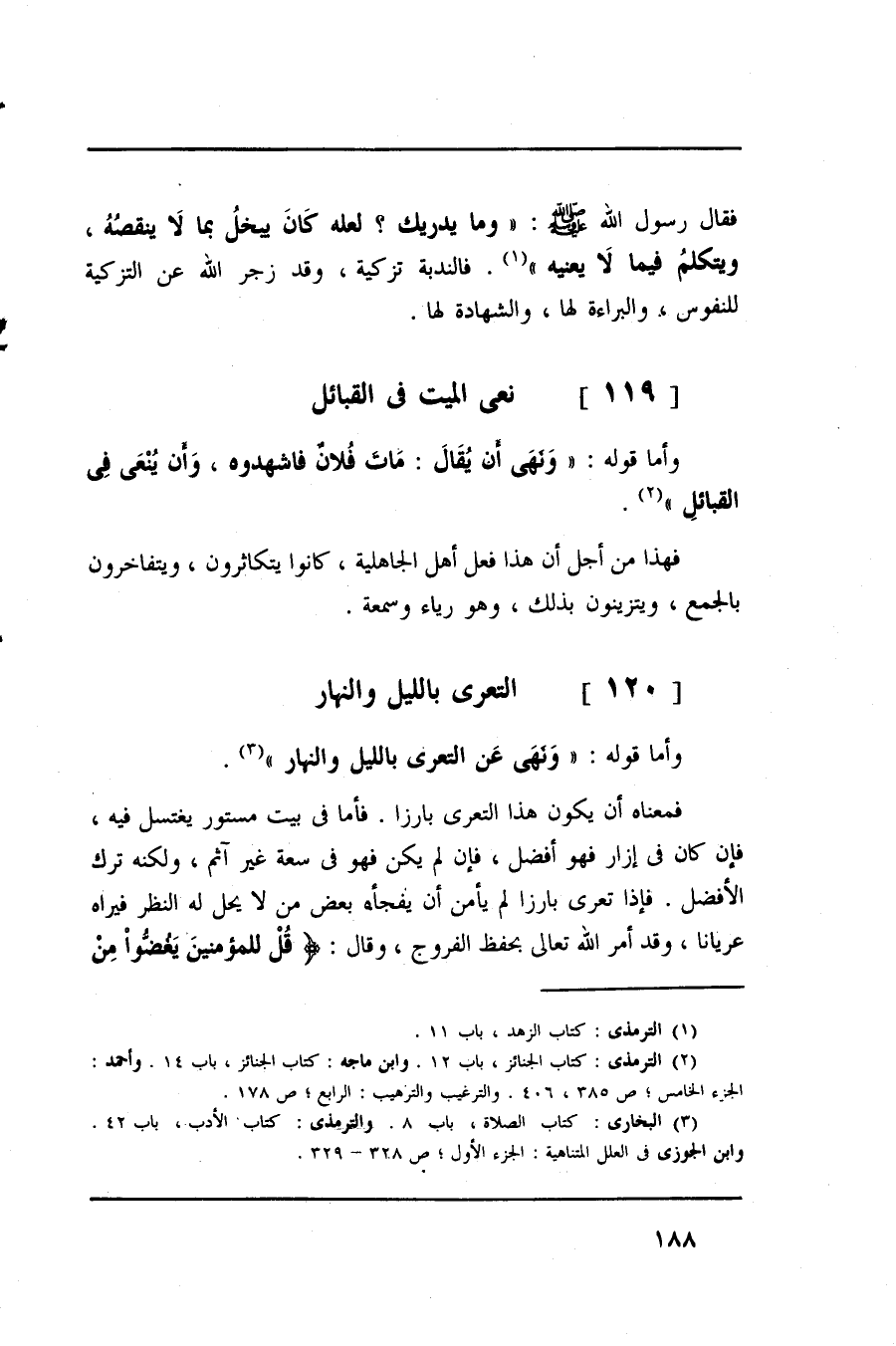 وأما قوله: (ونهى عن التعري بالليل والنهار) .