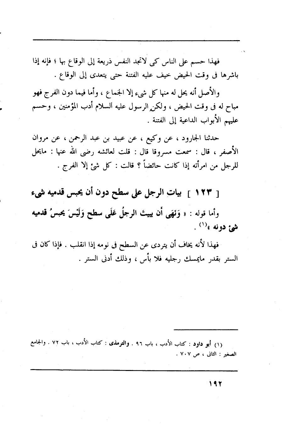 حدثنا الجارود، عن وكيع، عن عبيد بن عبد الرحمن، عن مروان الأصفر، قال: سمعت مسروقا قال: قلت لعائشة رضي الله عنها: ما يحل للرجل من امرأته إذا كانت حائضا؟ قالت: كل شيء إلا الفرج.