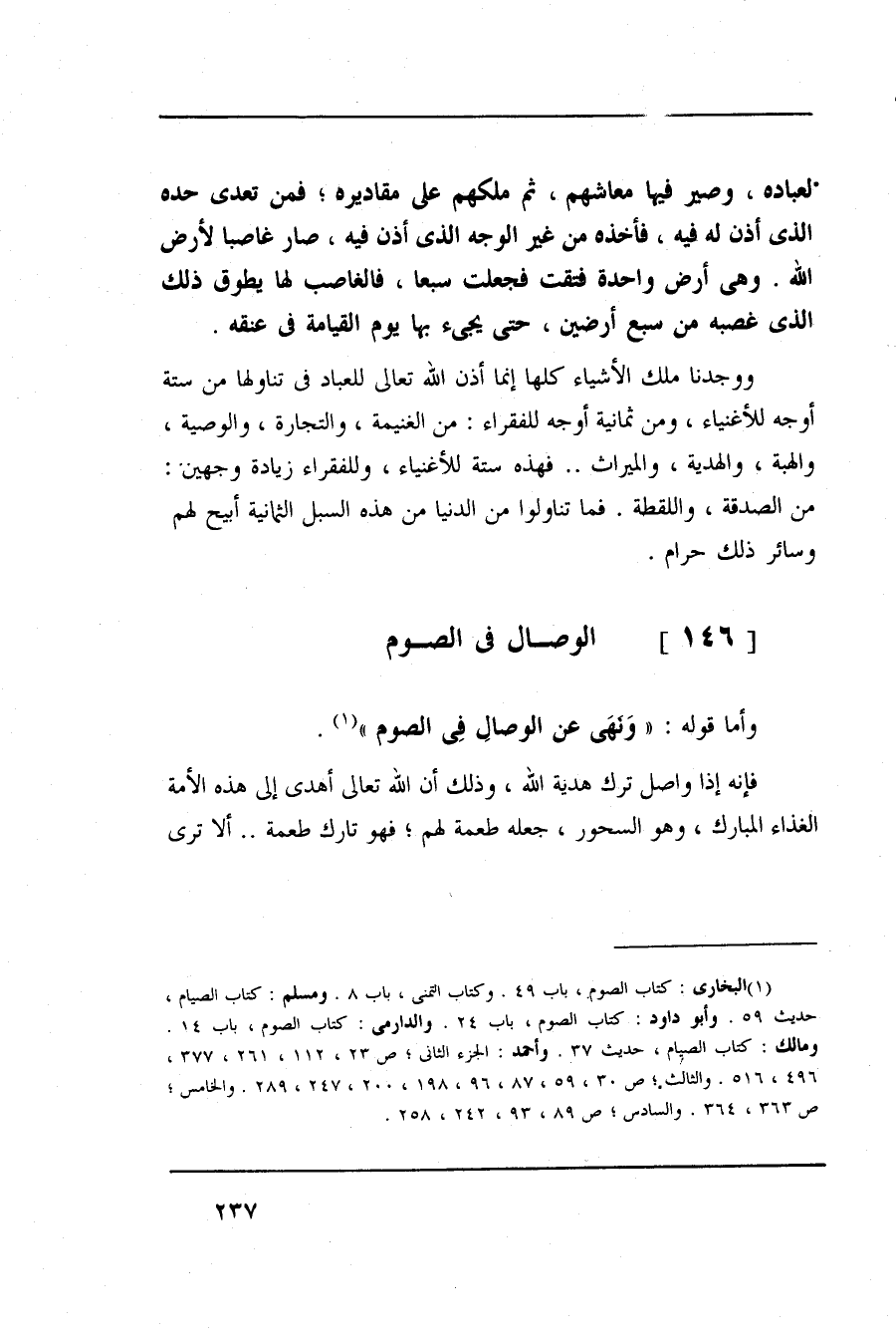 ووجدنا ملك الأشياء كلها إنما أذن الله تعالى للعباد في تناولها من ستة اوجه للأغنياء، ومن ثمانية أوجه للفقراء: من الغنيمة، والتجارة، والوصية، والهبة، والهدية، والميراث.. فهذه ستة للأغنياء، وللفقراء زيادة وجهين: من الصدقة، واللقطة. فما تناولوا من الدنيا من هذه السبل الثمانية أبيح لهم وسائر ذلك حرام.