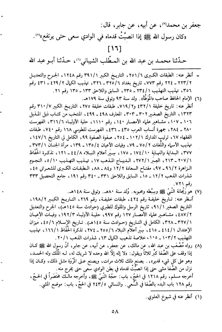 16 - حَدثنَا مُحَمَّد بن عبد الله بن الْمطلب الشَّيْبَانِيّ حَدثنَا أَبُو عبد الله جَعْفَر بن مُحَمَّد بن جَعْفَر الحسني حَدثنَا أَحْمد بن عبد الْمُنعم الْكُوفِي بعانة حَدثنَا عَمْرو بن شمر حَدثنِي جَعْفَر بن مُحَمَّد عَن أَبِيه عَن جَابر قَالَ