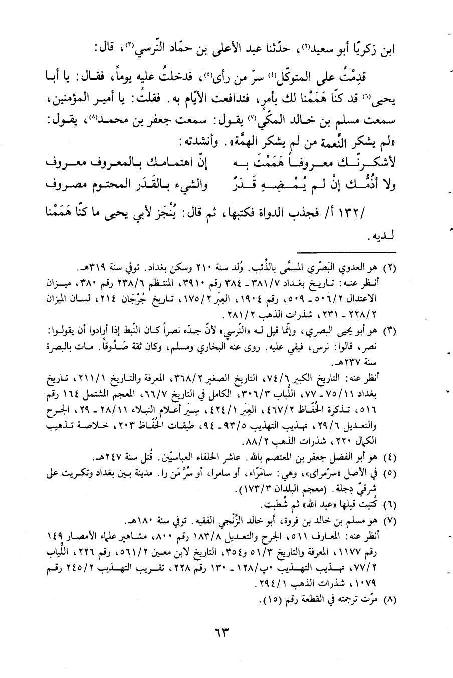 132 أفجذب الدواة فكتبها ثمَّ قَالَ ينجز لأبي يحي مَا كُنَّا هممنا لَدَيْهِ