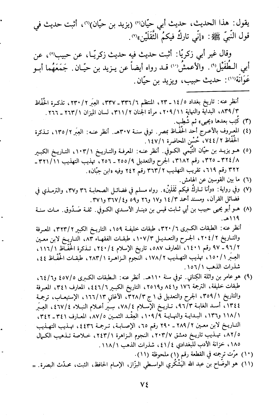 يَقُول هَذَا الحَدِيث حَدِيث أبي حَيَّان يزِيد بن حَيَّان أثبت حَدِيث فِي قَول النَّبِي صلى الله عَلَيْهِ وَسلم إِنِّي تَارِك فِيكُم الثقلَيْن