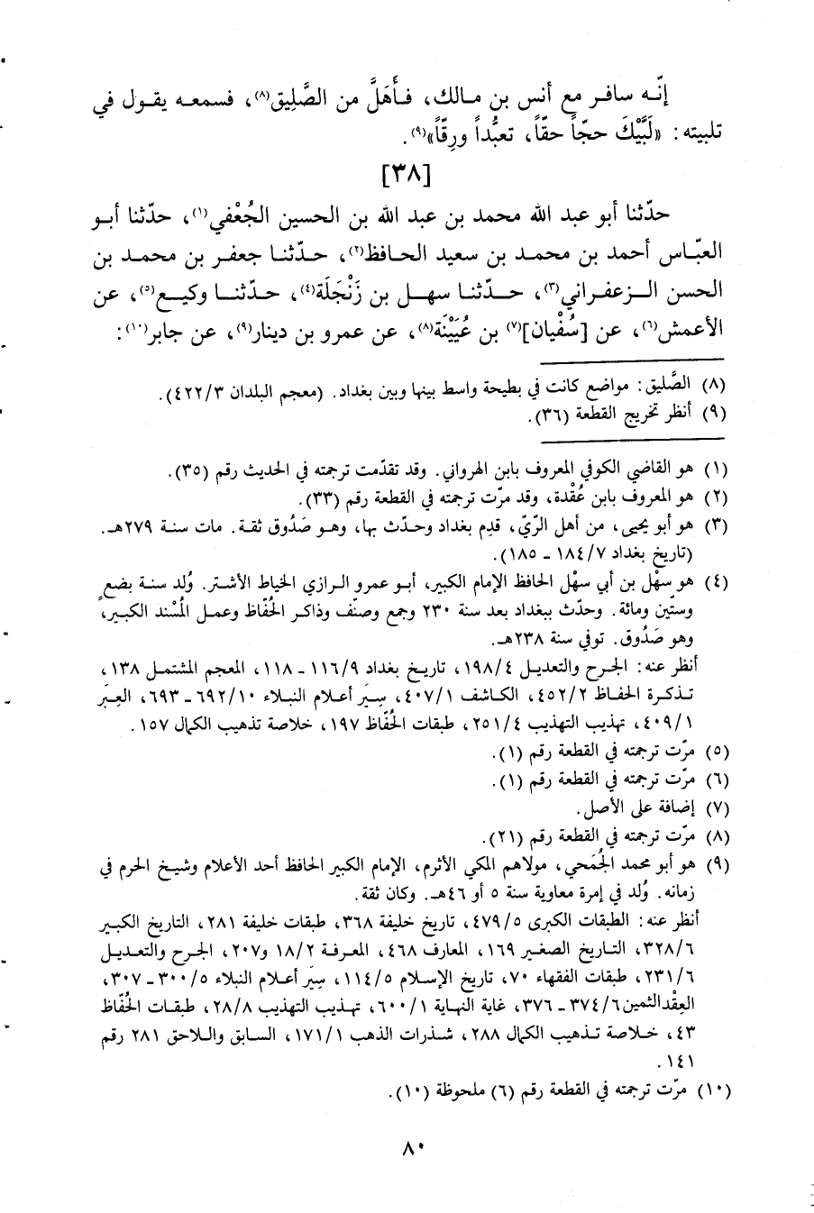 38 - حَدثنَا أَبُو عبد الله مُحَمَّد بن عبد الله بن الْحُسَيْن الْجعْفِيّ حَدثنَا أَبُو الْعَبَّاس أَحْمد بن مُحَمَّد بن سعيد الْحَافِظ حَدثنَا جَعْفَر بن مُحَمَّد بن الْحسن الزَّعْفَرَانِي حَدثنَا سهل بن زَنْجَلَة حَدثنَا وَكِيع عَن الْأَعْمَش عَن سُفْيَان بن عُيَيْنَة عَن عَمْرو بن دِينَار عَن جَابر