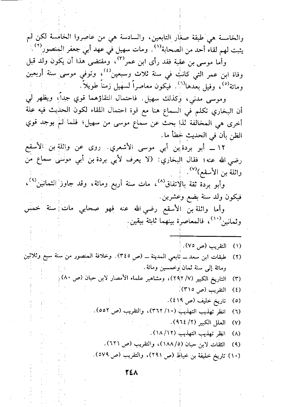ومات عثمان بن عبد الله سنة ستين ومائة (¬8) ، وهو وحمران كلاهما من المدينة المنورة، إلا أن حمران بن أبان قد خرج إلى البصرة واستوطنها في زمن عثمان بن عفان - رضي الله عنه - فاحتمال اللقاء وارد ولكنه غير قوي، وقد ذكر مسلم في صحيحه حديث عثمان بن موهب عن حمران كما سيأتي بيان ذلك في الفصل الخامس من الباب الثالث.