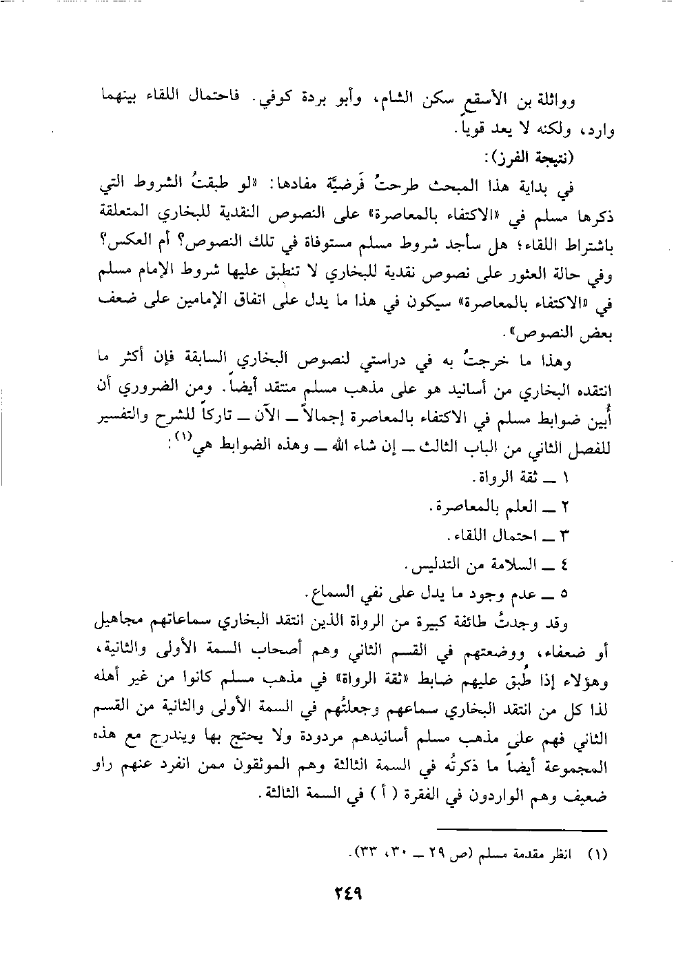 كتاب موقف الإمامين البخاري ومسلم من اشتراط اللقيا والسماع في السند المعنعن بين المتعاصرين